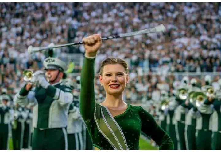 The band marched onto the field with unmistakable intensity. From the first booming note of the brass section to the crisp snap of the snare drums, it was clear this would be no ordinary performance. Their formations moved like living sculptures, shifting from sharp symmetry to sweeping visual storytelling with effortless grace. The musical arrangements blended tradition and innovation, honoring Michigan State’s legacy while pushing the boundaries of what marching artistry can be.