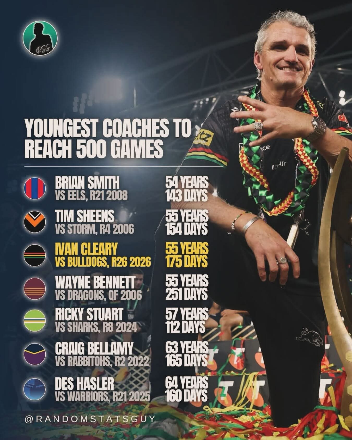 Here’s to Ivan Cleary — the calm force, the guiding heart, and now, one of the youngest coaches to ever hit 500 games.