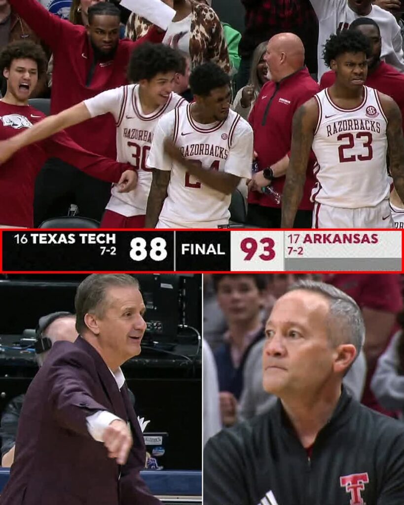 No. 17 Arkansas Razorbacks delivered one of those unforgettable nights, rising with courage and conviction to defeat No. 16 Texas Tech Red Raiders in a massive ranked showdown that sent a jolt through the college basketball world.