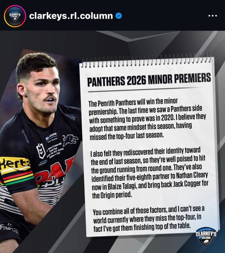 In the world of rugby league, belief is powerful — but when belief is backed by history, resilience, and undeniable class, it becomes something truly special. And right now, that belief is flowing strong through Panther Nation as fans rally behind Clarkey’s bold prediction: the Penrith Panthers will finish Minor Premiers in 2026.