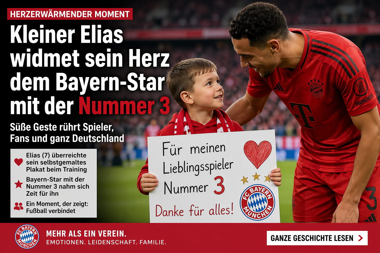 Rührender Moment: Kleiner Elias widmet sein Herz dem Bayern-Star mit der Nummer 3